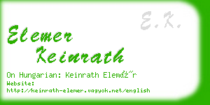 Welcome to ELEMER KEINRATH name analyzer. Attention - this page is analising the Elemer Keinrath name, not the person named ELEMER KEINRATH!